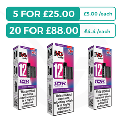 Experience the future of prefilled pod technology with IVG Pro 12 prefilled pods & refill containers. From rich fruit blends to refreshing menthols, our extensive flavour collection ensures there's a perfect match for every vaper.