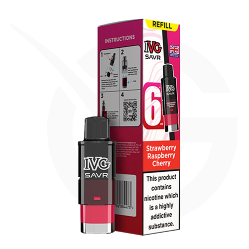 The Strawberry Raspberry Cherry IVG SAVR refill pack is made specifically for the IVG SAVR pod kit. It includes a 2ml prefilled pod and a 4ml refill container. With your SAVR device, this setup delivers up to 3000 puffs, offering a familiar and discreet MTL (Mouth To Lung) vaping experience.