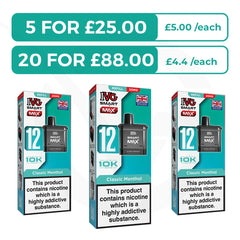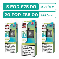 If you're looking for a vape that offers both convenience and performance, don't miss our IVG Smart Max kits. These kits deliver up to 10,000 puffs and come with prefilled pods containing nic salt e-liquid, available in nicotine strengths of up to 20mg. With a rechargeable 1000mAh battery and Type-C fast charging, you can quickly power up for your next session. The inhale-activated design and advanced mesh coil technology ensure smooth, flavourful vapour with every puff. Plus, our refill kits come in a variety of tasty flavours, including the creamy Banana Ice and juicy Triple Mango. For a hassle-free, high-performance vape, explore our IVG Smart Max collection below!