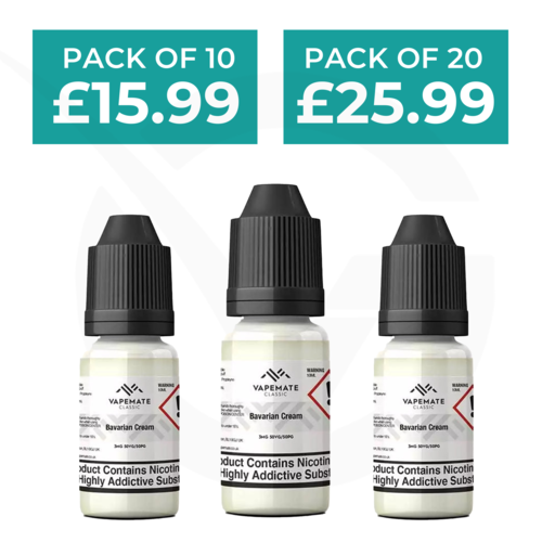 Introducing Vapemate Classic's Bavarian Cream E-Liquid—a trendy blend brimming with the indulgent flavour of rich vanilla cream.