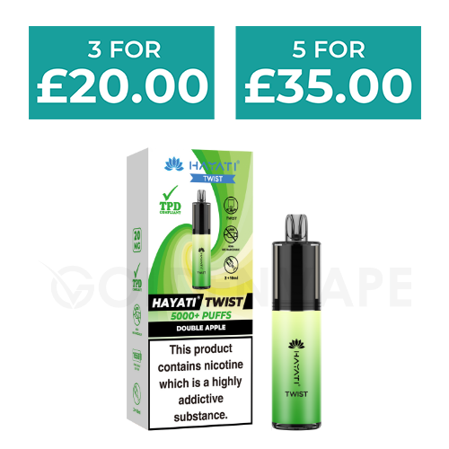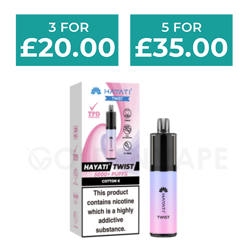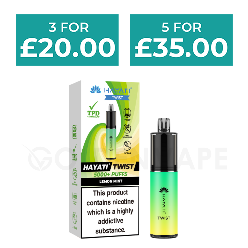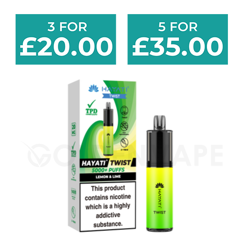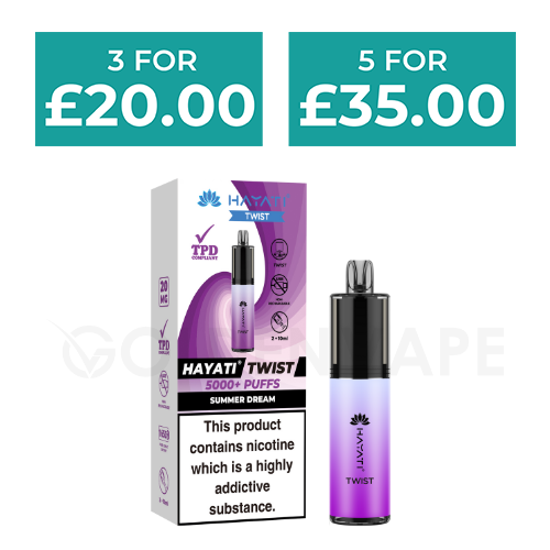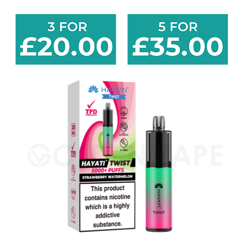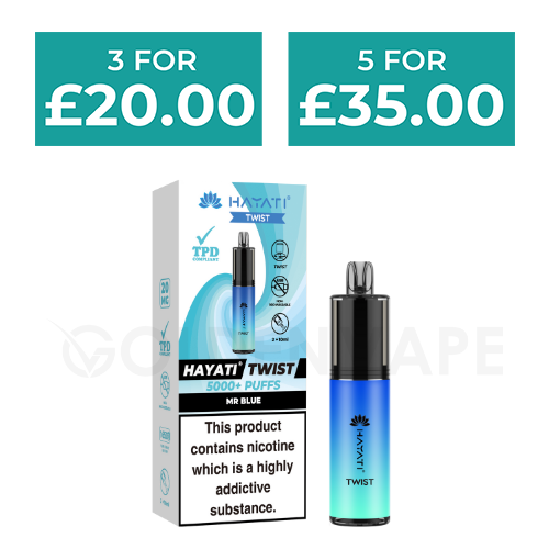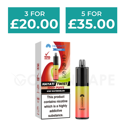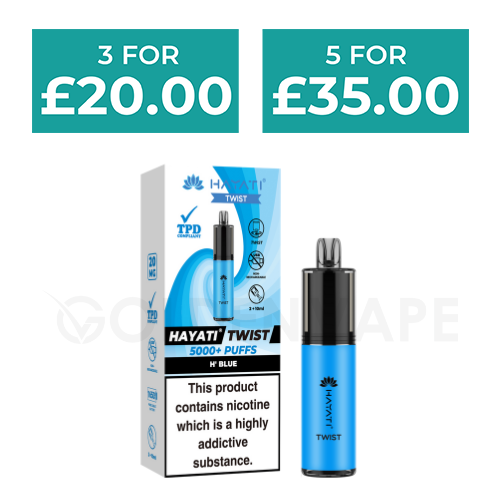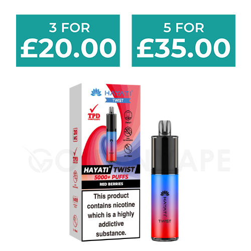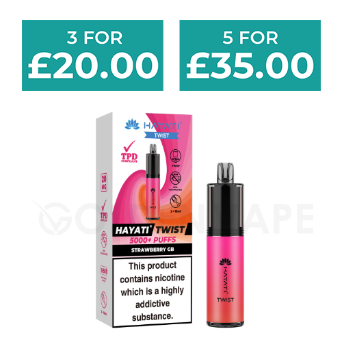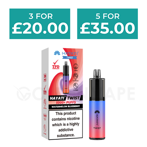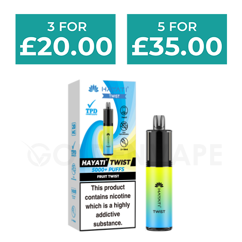 The Hayati Twist 5000 is available at Golden Vape for just £8.99, making it affordable and convenient for UK vapers. Golden Vape is your go-to shop for all Hayati products in the UK, including the Hayati Remix, Hayati Pro Ultra, Hayati E-liquid, and more.