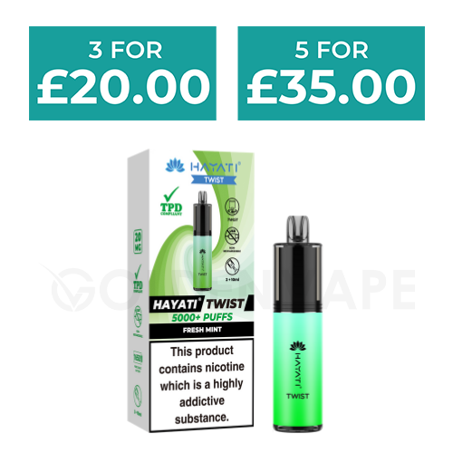 The Hayati Twist 5000 is priced at £8.99, offering an affordable choice for quality disposable vaping.